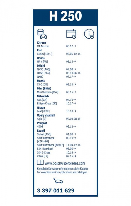 Stěrač BOSCH (BO 3397011629) - 250mm