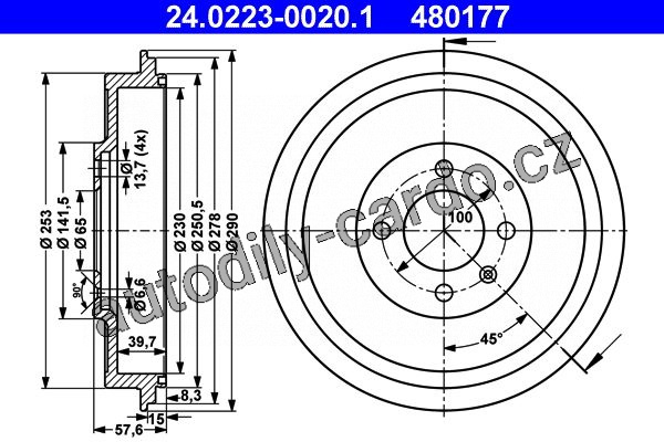Brzdový buben ATE 24.0223-0020 (AT 480177) - SEAT, VW
