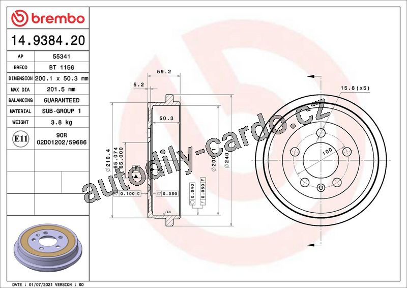 Brzdový buben BREMBO 14.9384.20