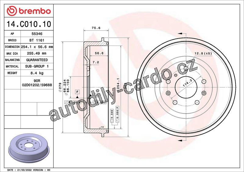 Brzdový buben BREMBO 14.C010.10