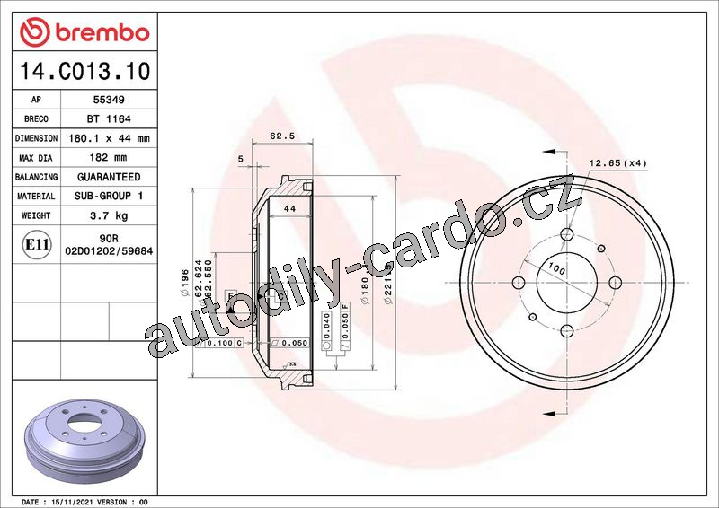 | Max. hodnota stočení brzdového bubnu [mm]: | 182 |