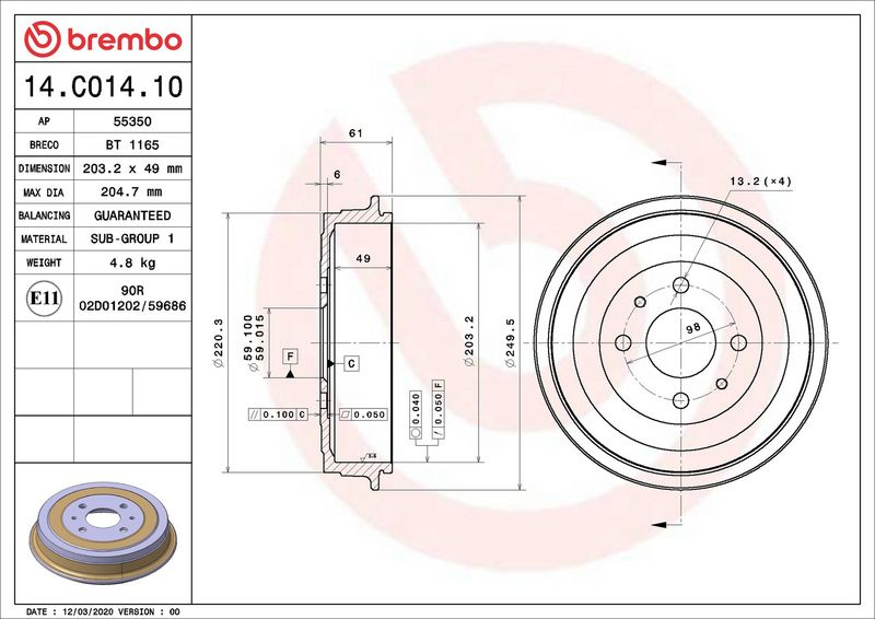Brzdový buben BREMBO 14.C014.10