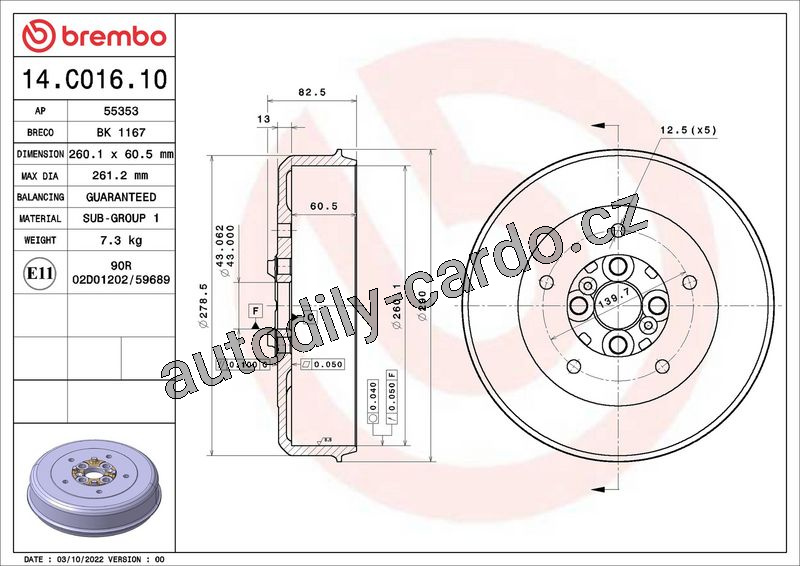 | Max. hodnota stočení brzdového bubnu [mm]: | 261,2 |