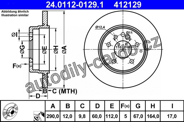 Brzdový kotouč ATE 24.0112-0129 (AT 412129) - MERCEDES-BENZ