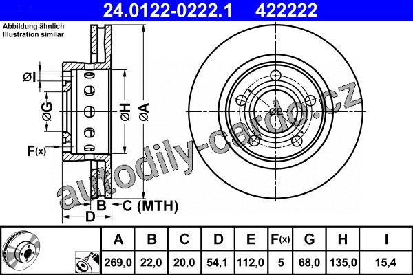 Brzdový kotouč ATE 24.0122-0222 (AT 422222) - VW