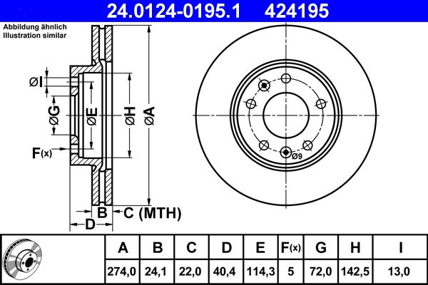 Brzdový kotouč ATE 24.0124-0195 (AT 424195) - KIA