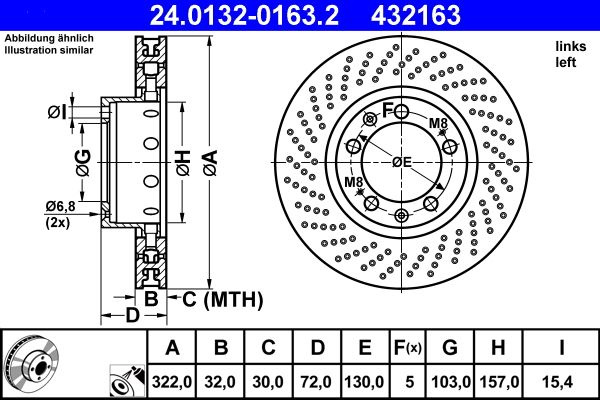 Brzdový kotouč ATE 24.0132-0163 (AT 432163) - PORSCHE