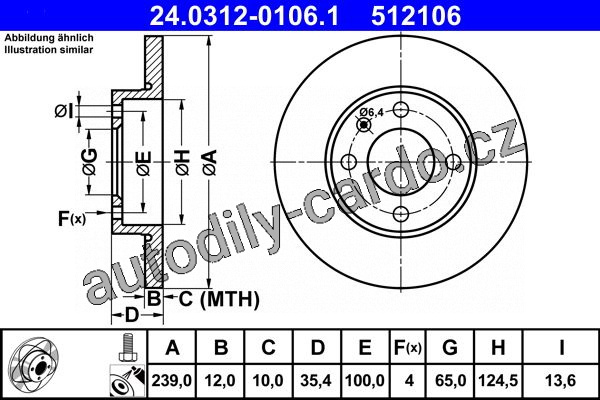 Brzdový kotouč ATE 24.0312-0106 (AT 512106) - Power Disc - AUDI, SEAT, VW