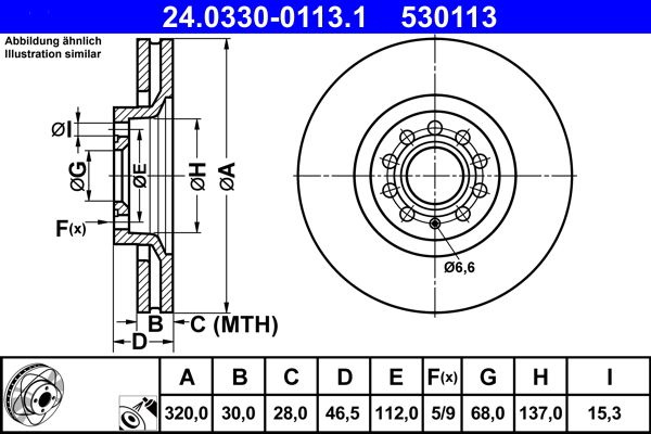 Brzdový kotouč ATE 24.0330-0113 (AT 530113) - Power Disc - AUDI