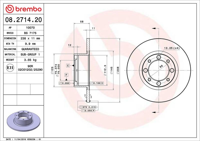 Brzdový kotouč BREMBO 08.2714.20 - TALBOT