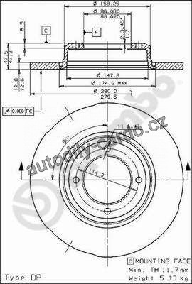 | Typ brzdového kotouče: | plný |