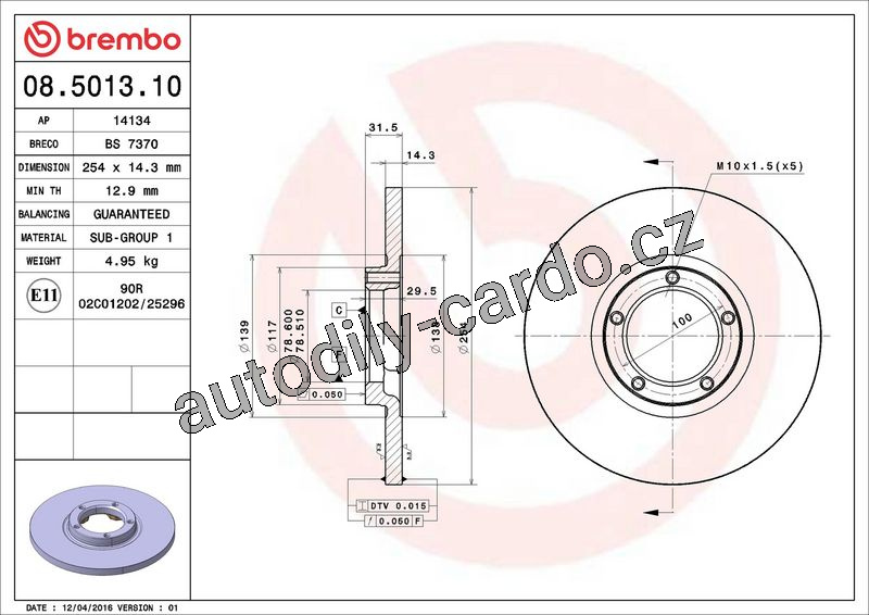 Brzdový kotouč BREMBO 08.5013.10 - FORD