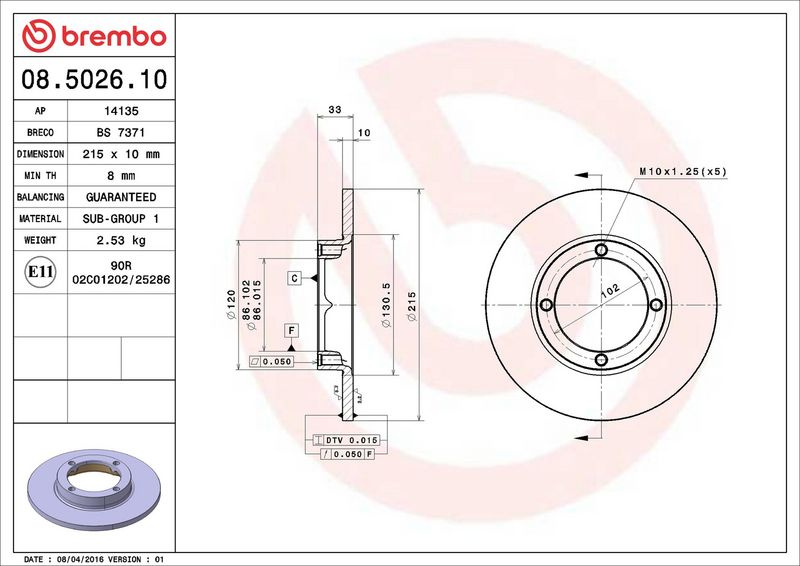 Brzdový kotouč BREMBO 08.5026.10 - SUZUKI