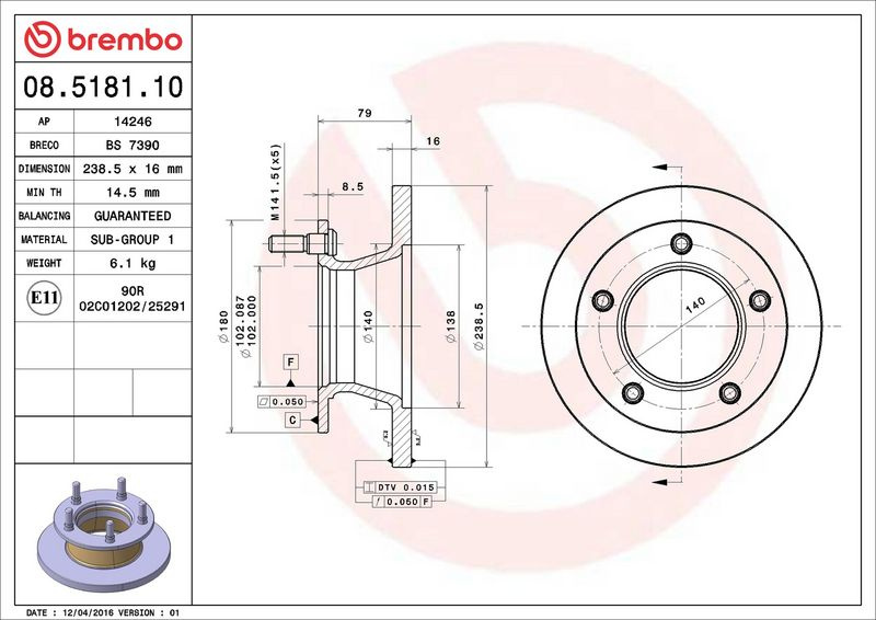 Brzdový kotouč BREMBO 08.5181.10 - MERCEDES-BENZ