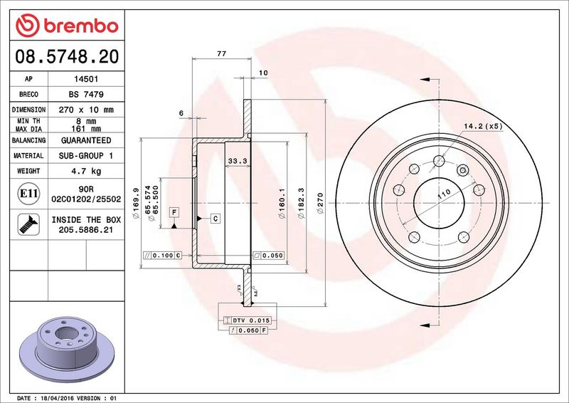 Brzdový kotouč BREMBO 08.5748.20 - OPEL