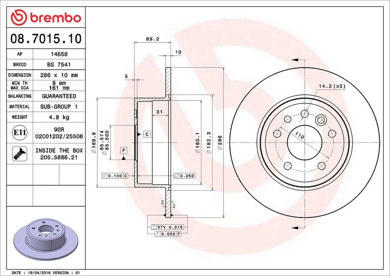 Brzdový kotouč BREMBO 08.7015.10 - OPEL