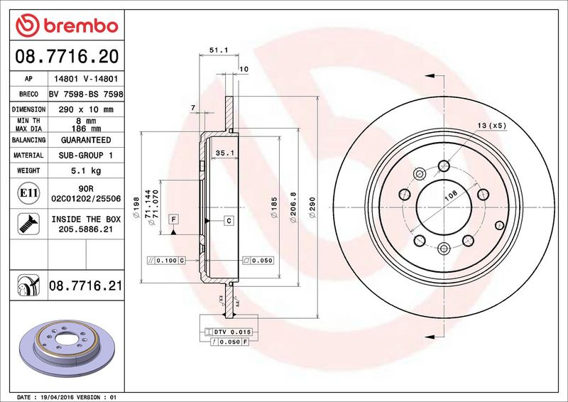 Brzdový kotouč BREMBO 08.7716.21