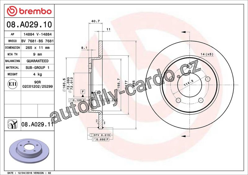 Brzdový kotouč BREMBO 08.A029.11