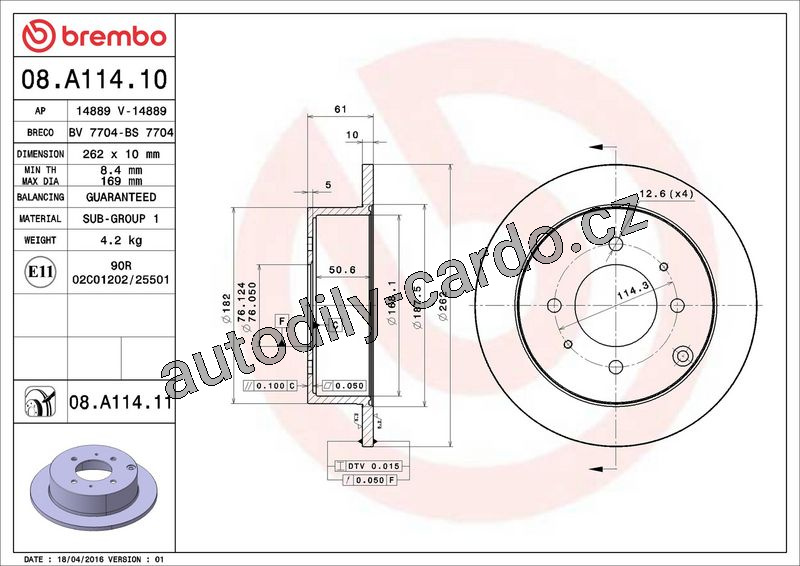 Brzdový kotouč BREMBO 08.A114.11