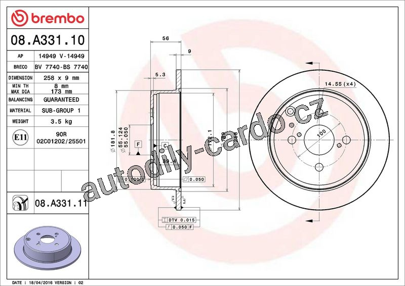 Brzdový kotouč BREMBO 08.A331.11