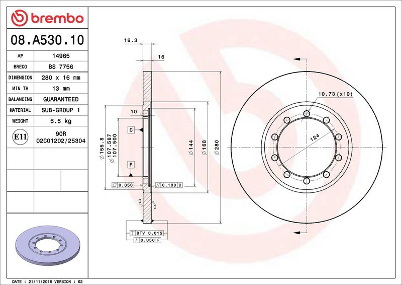 Brzdový kotouč BREMBO 08.A530.10