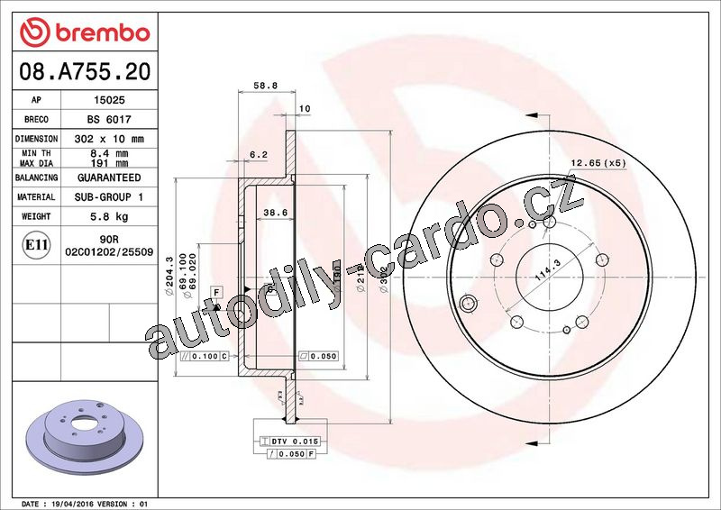 Brzdový kotouč BREMBO 08.A755.20