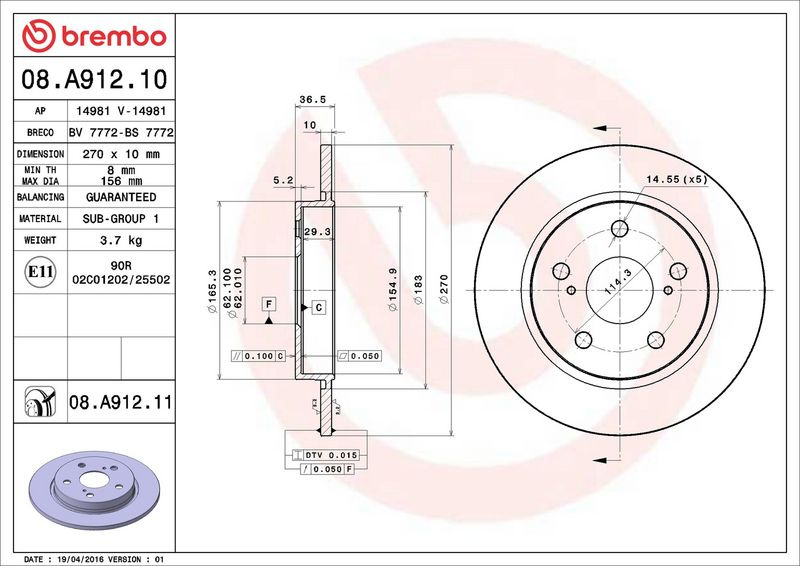 Brzdový kotouč BREMBO 08.A912.11