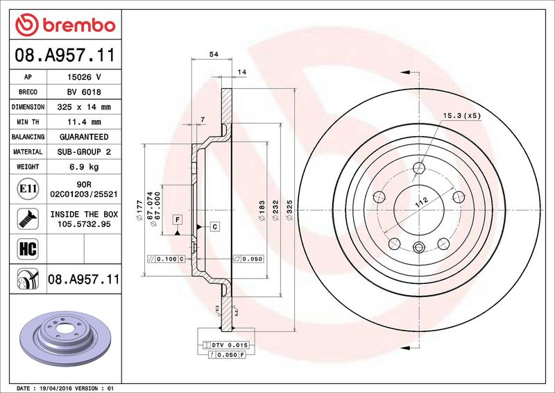 Brzdový kotouč BREMBO 08.A957.11