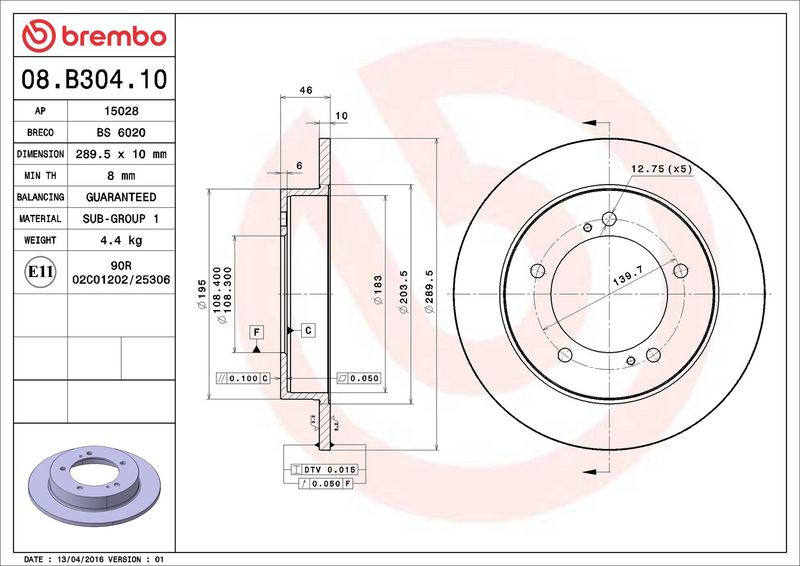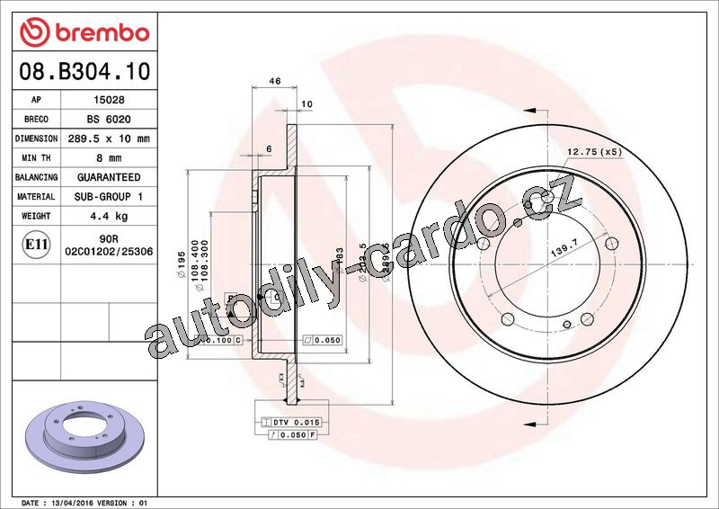 Brzdový kotouč BREMBO 08.B304.10