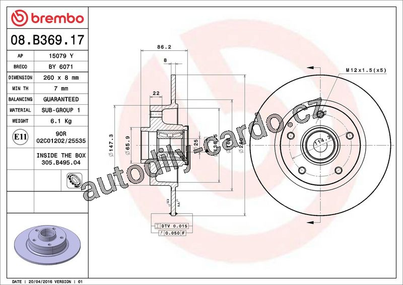 Brzdový kotouč BREMBO 08.B369.17