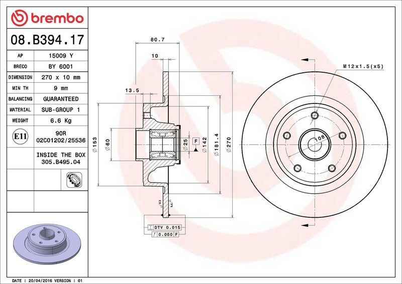 Brzdový kotouč BREMBO 08.B394.17