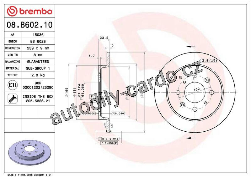 Brzdový kotouč BREMBO 08.B602.10