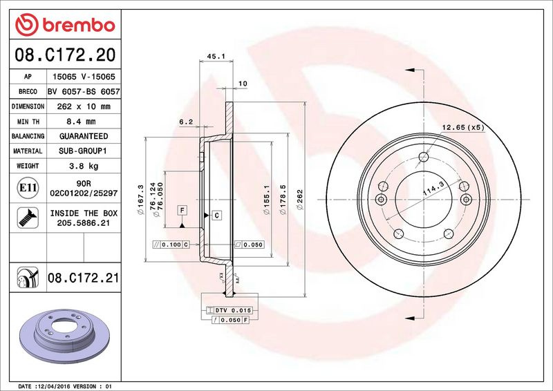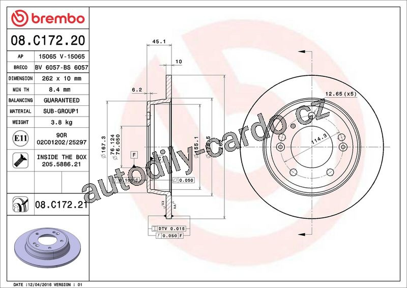 Brzdový kotouč BREMBO 08.C172.21