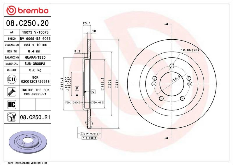 Brzdový kotouč BREMBO 08.C250.21