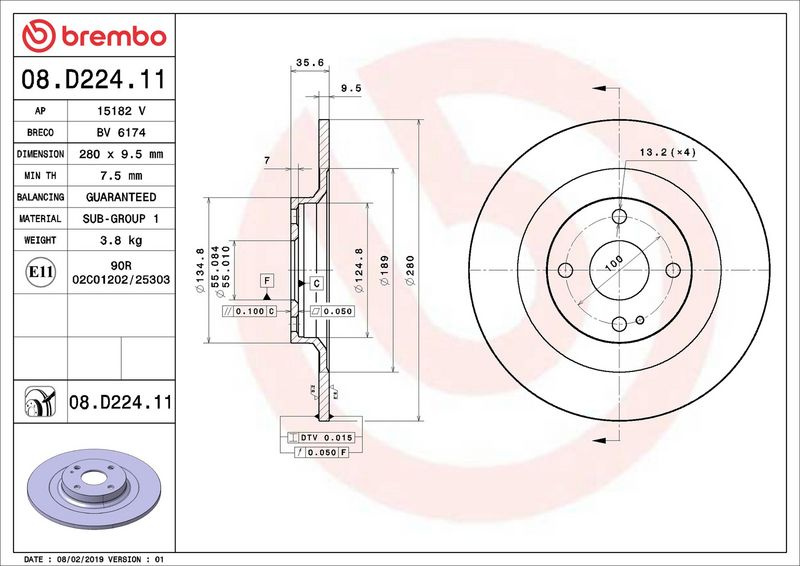 Brzdový kotouč BREMBO 08.D224.11