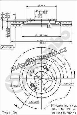| Typ brzdového kotouče: | vnitřně větráno |