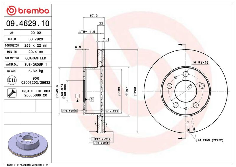 Brzdový kotouč BREMBO 09.4629.10 - VOLVO