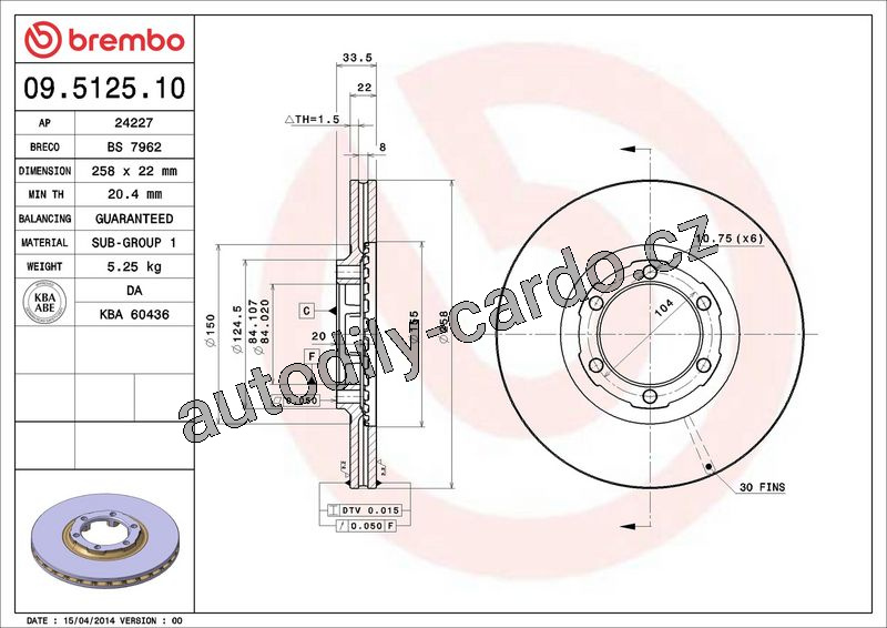 Brzdový kotouč BREMBO 09.5125.10 - MITSUBISHI