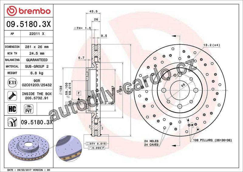 Brzdový kotouč BREMBO 09.5180.3X