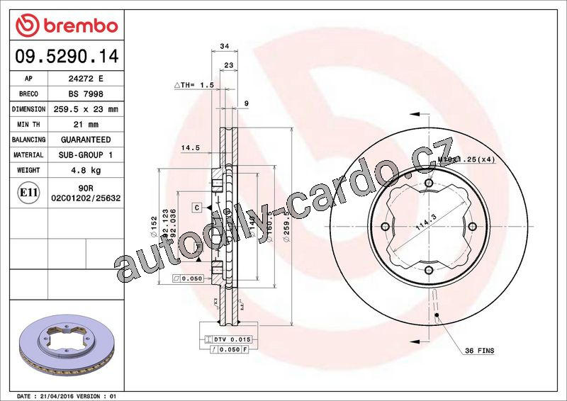 Brzdový kotouč BREMBO 09.5290.14 - HONDA