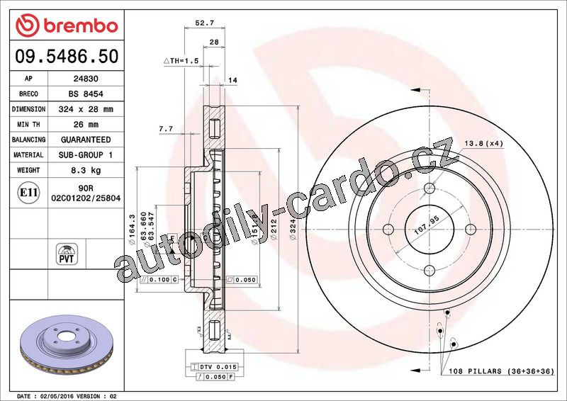 Brzdový kotouč BREMBO 09.5486.50 - FORD