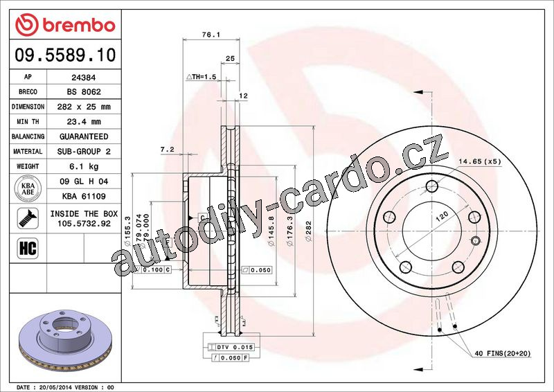 Brzdový kotouč BREMBO 09.5589.10 - BMW
