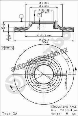 | Typ brzdového kotouče: | vnitřně větráno |