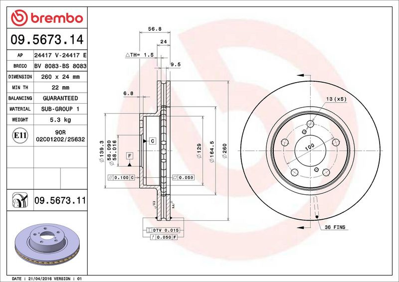 Brzdový kotouč BREMBO 09.5673.14 - SUBARU