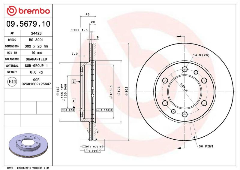 Brzdový kotouč BREMBO 09.5679.10 - TOYOTA