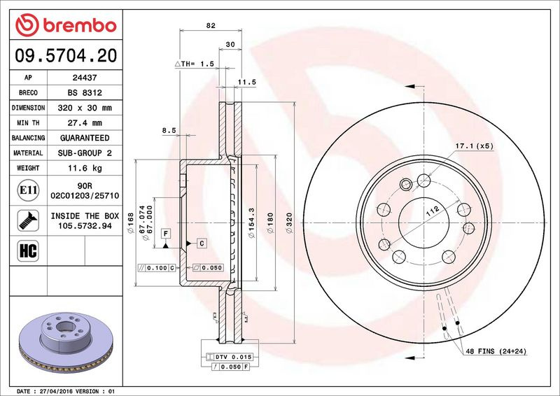 Brzdový kotouč BREMBO 09.5704.20 - MERCEDES-BENZ