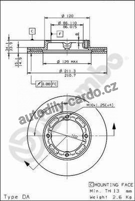 | Typ brzdového kotouče: | vnitřně větráno |