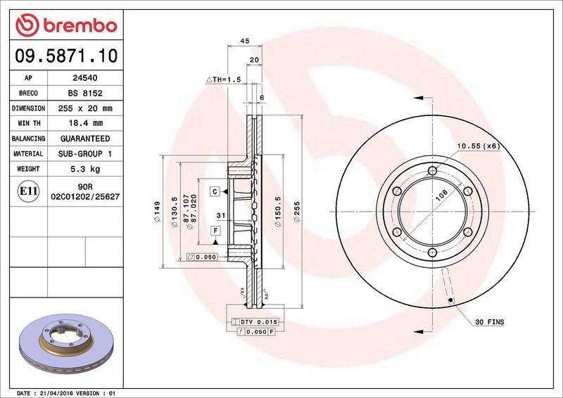 Brzdový kotouč BREMBO 09.5871.10 - MITSUBISHI