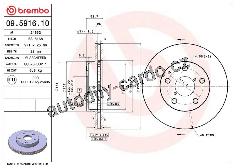 Brzdový kotouč BREMBO 09.5916.10 - TOYOTA