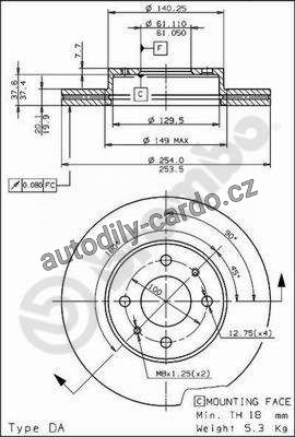 | Typ brzdového kotouče: | vnitřně větráno |